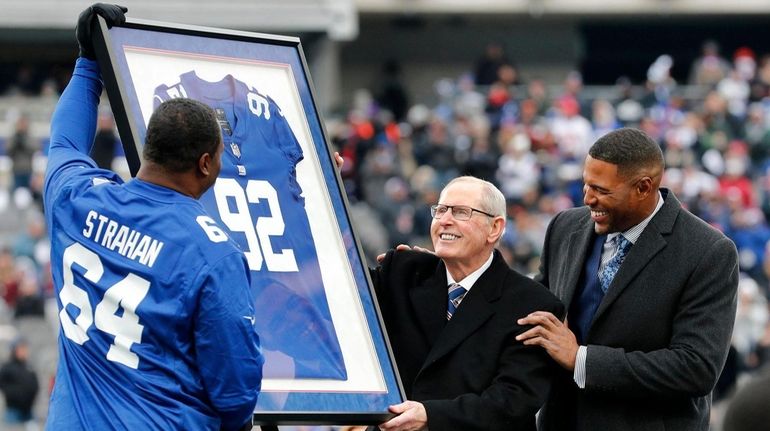 92 jersey that once belonged to New York all-time great pass-rusher and Hall of Famer Michael Strahan on a to-be-announced. Retired New York Giants legend and Pro Football Hall of Fame defensive end Michael Strahan is having a huge week. 28 when the Giants host the visiting Philadelphia Eagles for a 100 pm.